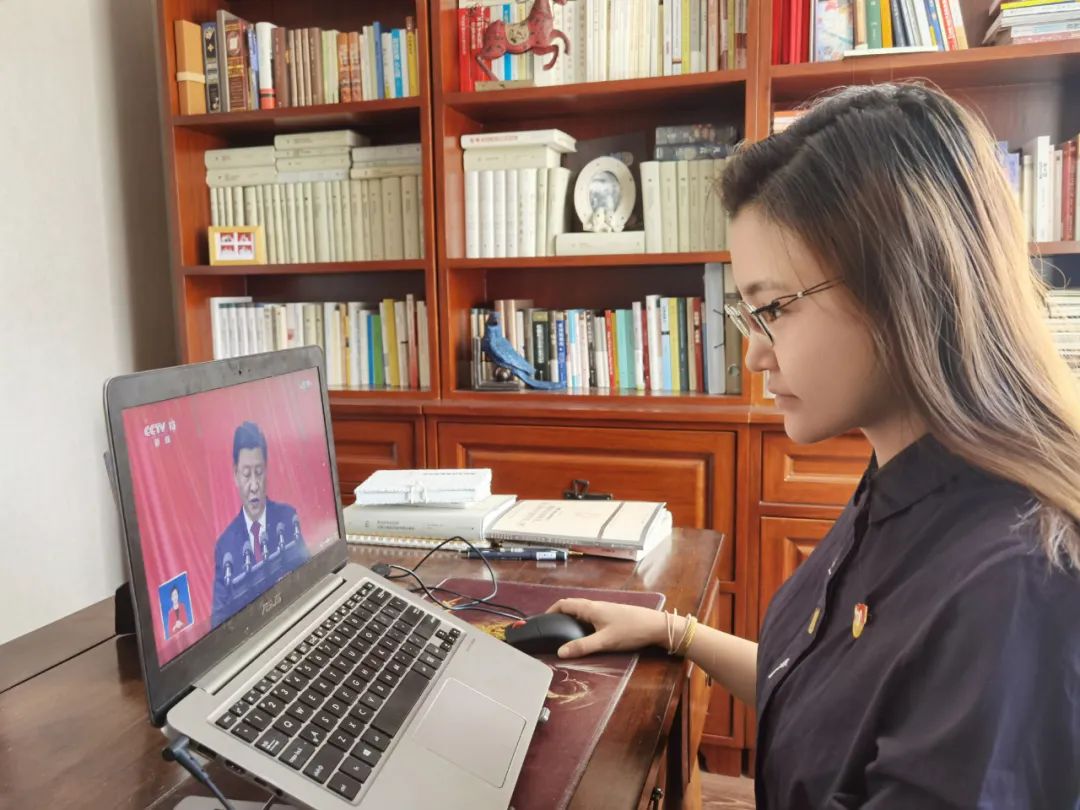 医学工程技术学院青年骨干教师努尔尼沙·阿力甫观看大会直播