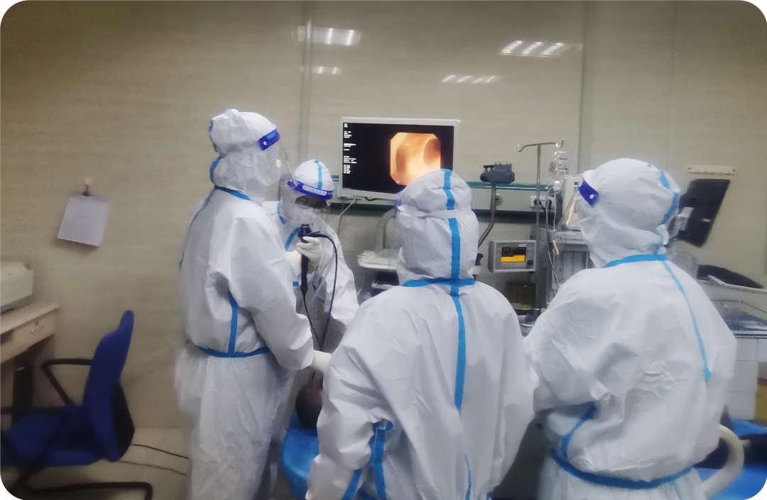 肿瘤急诊患者免疫力低下,多伴有器官功能损害,常会因各部位感染、呼吸衰竭、消化道出血、肠梗阻、胸腹腔及心包积液等前来就诊,起病急,变化快,稍有不慎随时有生命危险,要求医护人员高度集中精力进行急救。但穿着防护服,戴着两层手套,做穿刺、注射等治疗时会影响手的触感,医护人员克服各种困难,有效开展诊疗。