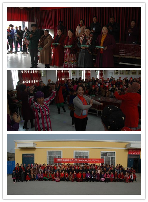 其次是开展节日表彰活动,3月6日升国旗仪式宣教活动后,在村委会活动中心隆重举行庆祝“国际劳动妇女节”庆典,200多名妇女参加,由村支书简要介绍妇女节的来历;由村妇代会主任宣读倡议书;设置“金婚”、“宝石婚”、“好媳妇”、“好邻居”、“好卫生”、“积极参加村委会各项活动积极分子”六个奖项,共33位妇女受到表彰;由张新荣副队长做《人民共和国妇女权益保障法》基本知识的宣教,用最接地气的言语告知姐妹们,要运用法律知识保护自己的合法权益,要孩子上学,提高综合素质,要自尊、自信、自强、自爱。宣教后,举行基本知识竞答,问题涉及《人民共和国妇女权益保障法》、“总目标”及工作队的基本信息。在没有彩排的前提下,现场气氛很是活跃,所有答对问题的姐妹们都收到了工作队送上的小礼品。伴随着欢快的麦西来普,美丽的姑娘们舞起来,裙角飞扬,台上台下处处洋溢着欢乐的笑脸。临别,工作组和村委向每一位参加庆典的姐妹们送上了节日的祝福和小小心意,庆典活动圆满落幕。