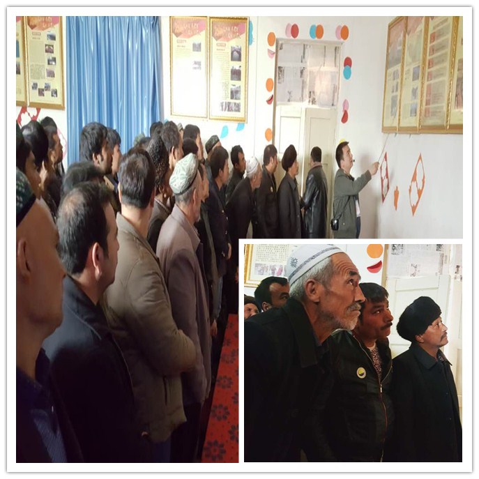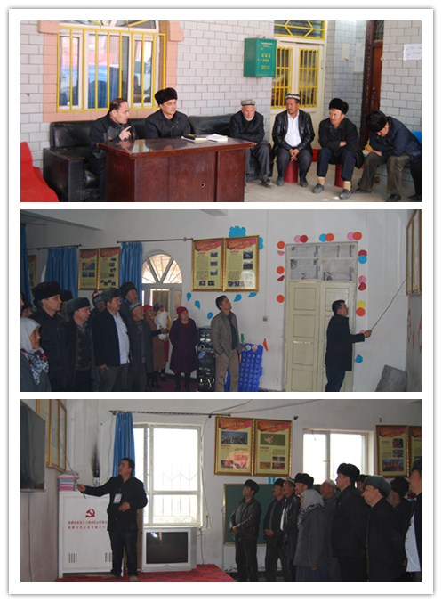 为了不影响村民春季备耕,7日下午工作队利用村民们参加村里组织活动的机会,组织大家参观宣传挂图。工作队队员迪力夏提·艾尔肯同志为村民讲解挂图内容,让大家感受到在党中央的亲切关怀下,在自治区党委、人民政府的正确领导下,共同感受祖国、家乡的巨大变化。挂图展示了新疆和平解放后翻天覆地的变化,并教育引导大家要珍惜今天的幸福生活,要竭尽全力自觉维护祖国统一,民族团结和社会稳定,引导各族群众勿忘历史,明辨是非、坚定立场。