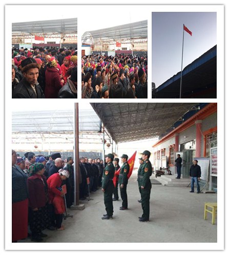 3月5日,和田墨玉县扎瓦镇英吾斯堂村,千人同唱的国歌声响彻村委会,原来他们是在为明天星期一庄严肃穆的升国旗活动做准备。为深入贯彻中共和田地委组织部印发的《和田地区村(社区)党组织周一升国旗宣传教育活动规范》的通知精神,新医大“访惠聚”驻村工作队同英吾斯堂村村委会的干部们已经持续准备数日,组建国旗护卫队、训练国旗手、教村民唱国歌等活动陆续开展。