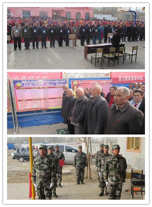 来自托格拉克麻扎村5个村民小组的农牧民一千多人聚集在村政府大院里,他们中有7-80岁的老人,中年人,年轻人也有带着孩子参加升旗仪式的妇女。