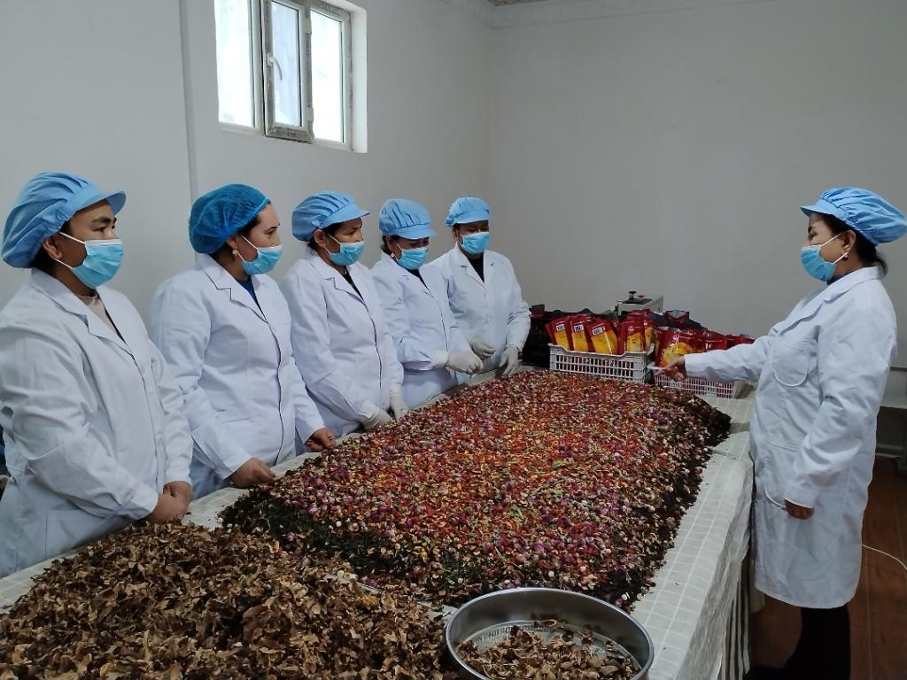 如今,巴夏克其村已成为有名的“茶叶村”,村民种植玫瑰花、罗勒等作物的热情越来越高,年产各类原材料4.5吨,深加工特色产品4吨,带动40余户村民户均年增收1.2万元。