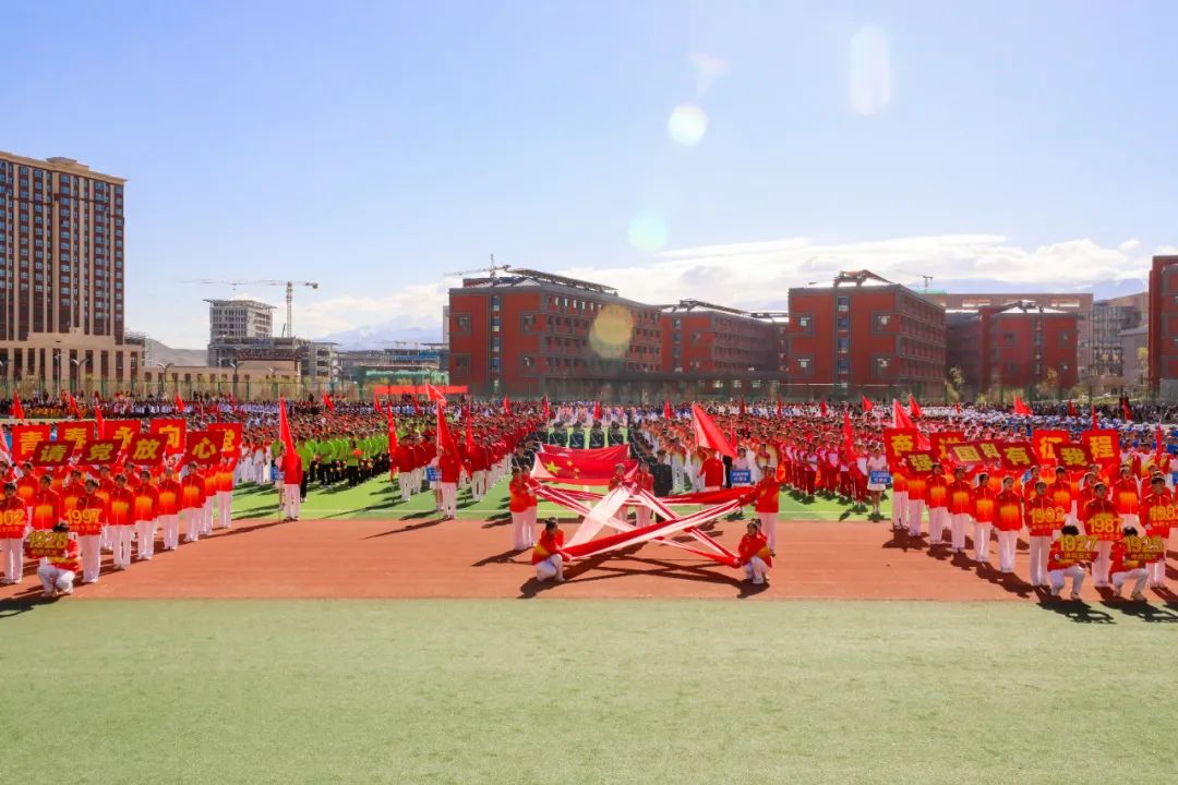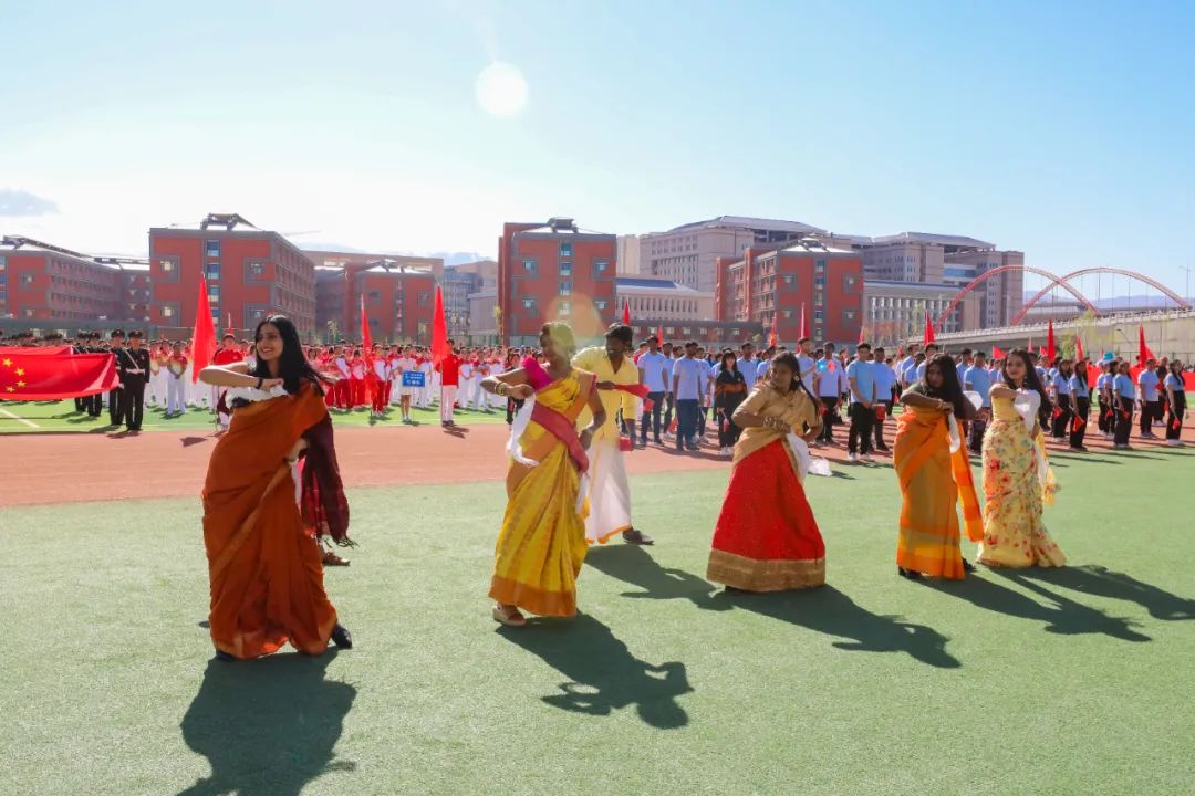 全体在家校领导,全体运动员、裁判员,师生代表参加了运动会开幕式。校党委书记赵天杰宣布运动会开幕,校党委副书记、校长阿吉艾克拜尔·艾萨致开幕辞。