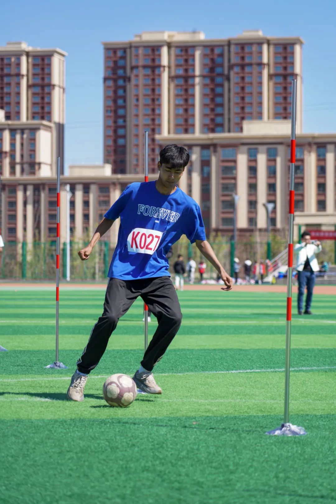 足球运球绕8杆射门计时赛