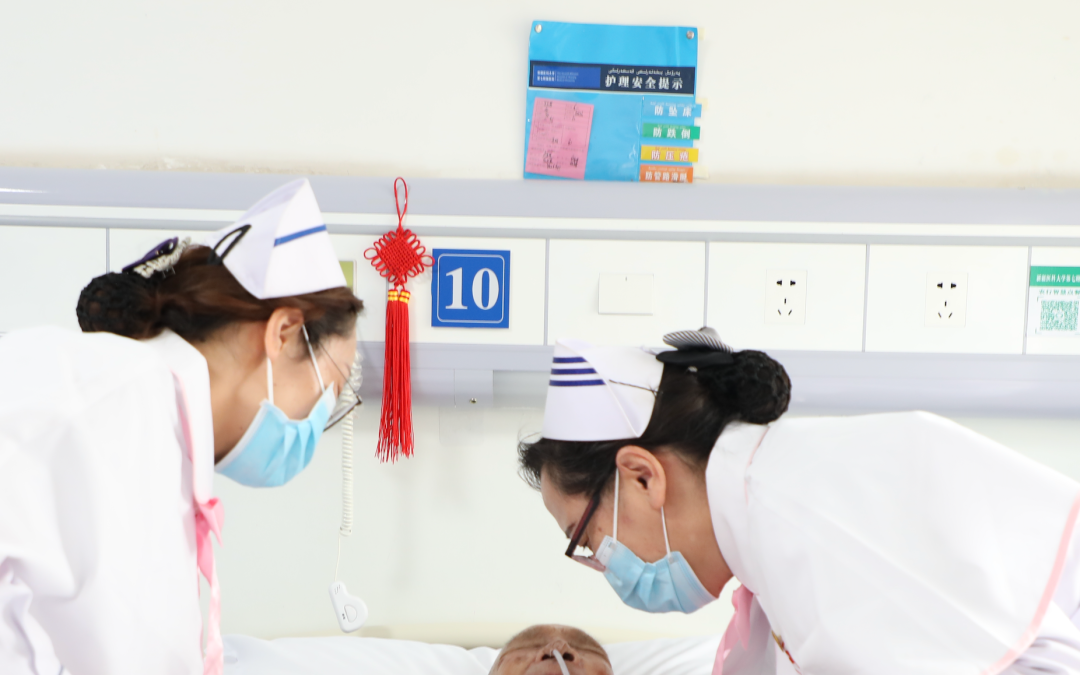 护士在床旁护理老年病患