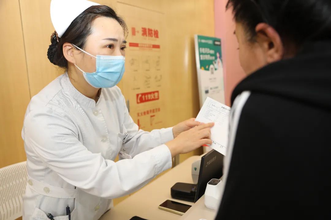 导医台护士细心解答患者的咨询
