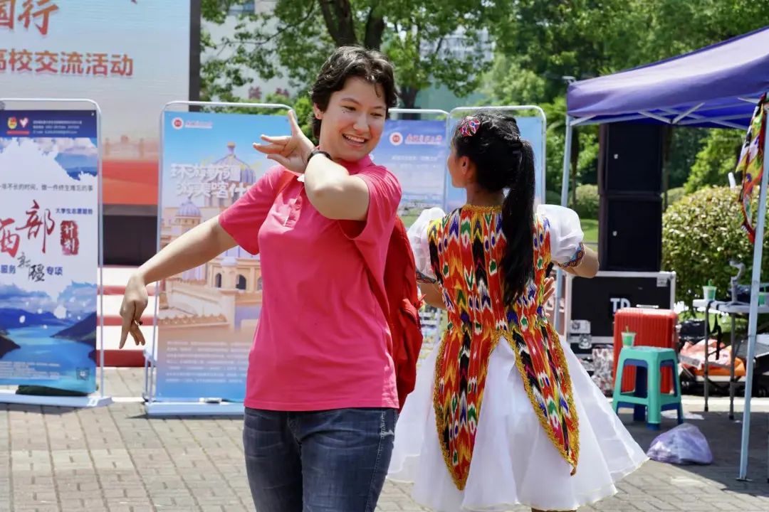 5月28日,beat365唯一官方网站“石榴籽 祖国行”民族团结实践团23位师生走进南京医科大学开展新疆特色展示、特色市集巴扎、“草坪音乐会”文艺活动、“新疆故事”主题座谈分享会等,用青春歌舞、特色文化展示活动,讲好新疆故事。