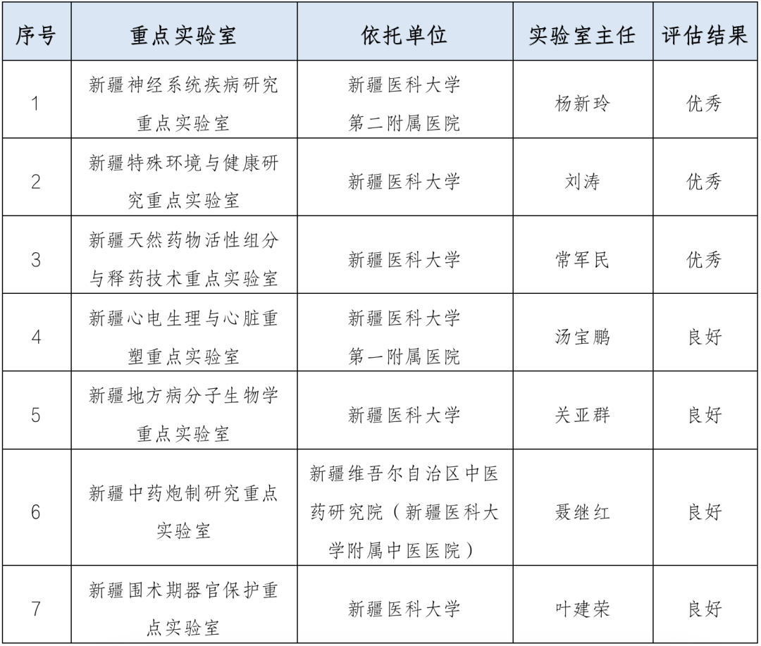 近日,自治区科学技术厅对44家自治区重点实验室进行了验收评估。beat365共有7家自治区重点实验室参与评估,其中3家获评优秀,4家获评良好。参评的“新疆神经系统疾病研究重点实验室”、“新疆特殊环境与健康研究重点实验室”、“新疆天然药物活性组分与释药技术重点实验室”、“新疆心电生理与心脏重塑重点实验室”、“新疆中药炮制研究重点实验室”五家实验室正式挂牌运行。