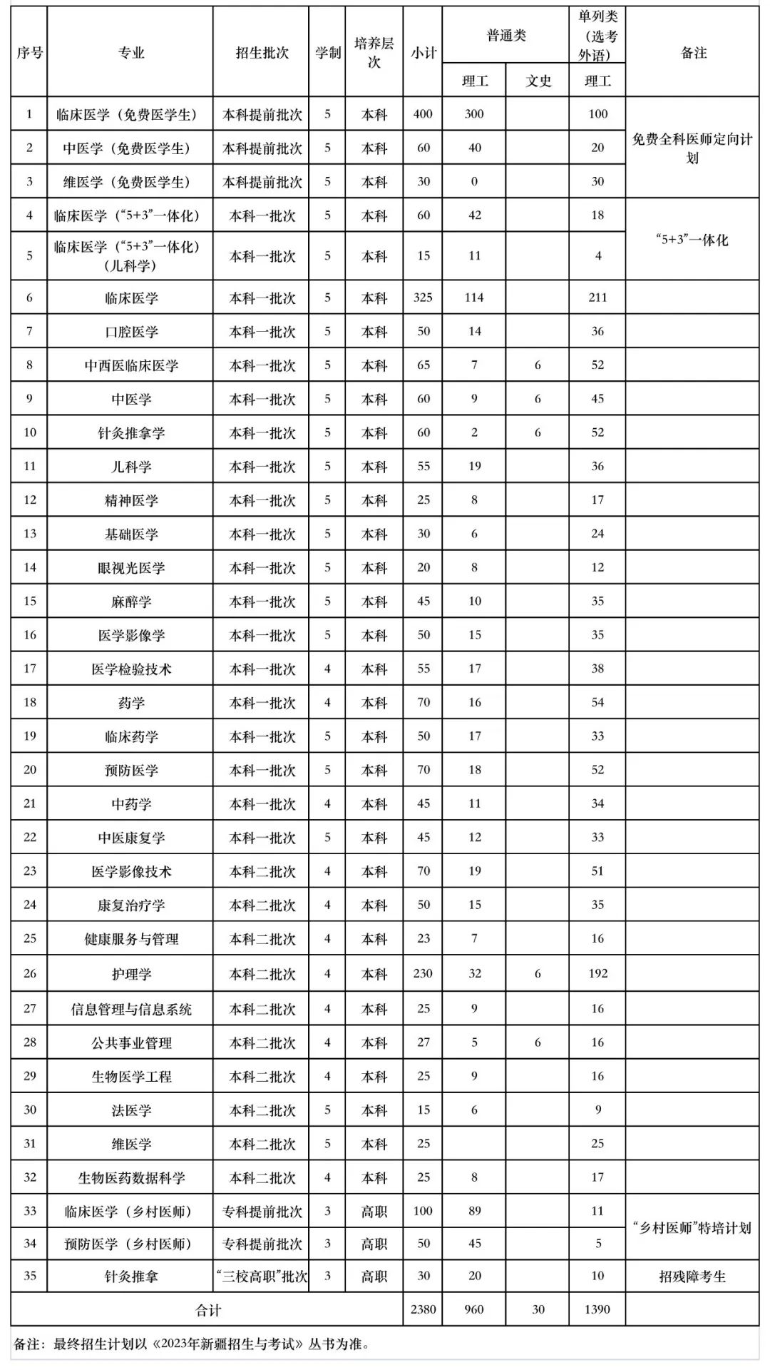 beat365唯一官方网站2023年疆内招生计划