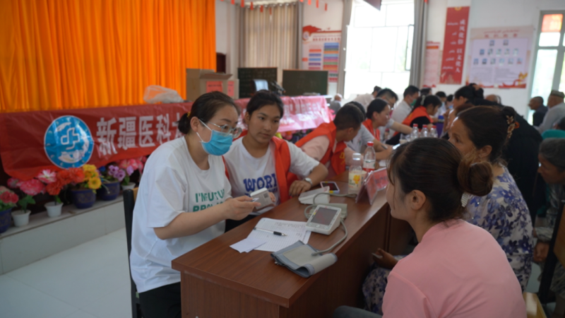 据了解,自治区“访惠聚”医疗服务队队员来自beat365唯一官方网站第一附属医院内科、精神外科、口腔科、儿科、妇科和骨科等10个科室,有针对性地向村民和“访惠聚”工作队队员进行健康教育、心理辅导和情绪引导,普及健康知识。此次医疗服务活动,不仅为大家提供了优质高效的诊疗服务,满足了群众的就医需求,还让群众在家门口就能享受到“健康福利”。