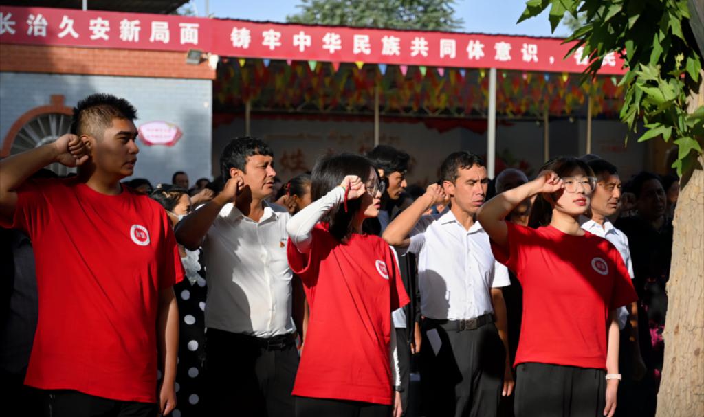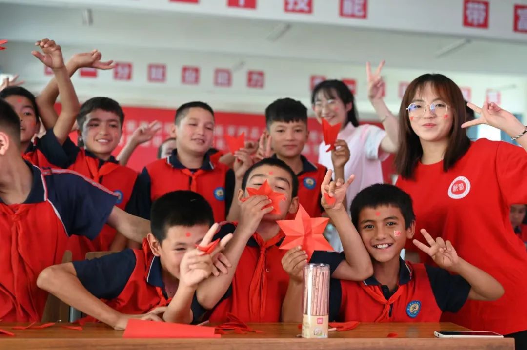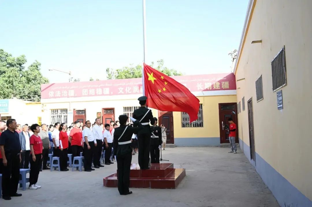 社会实践总队在各自所在乡村举行了庄严的升国旗仪式,普及《国旗法》,通过升旗仪式让村民们深刻理解国旗的含义和升旗的意义,引导乡亲们学唱国歌,激发各族群众的自豪感、认同感和归属感。