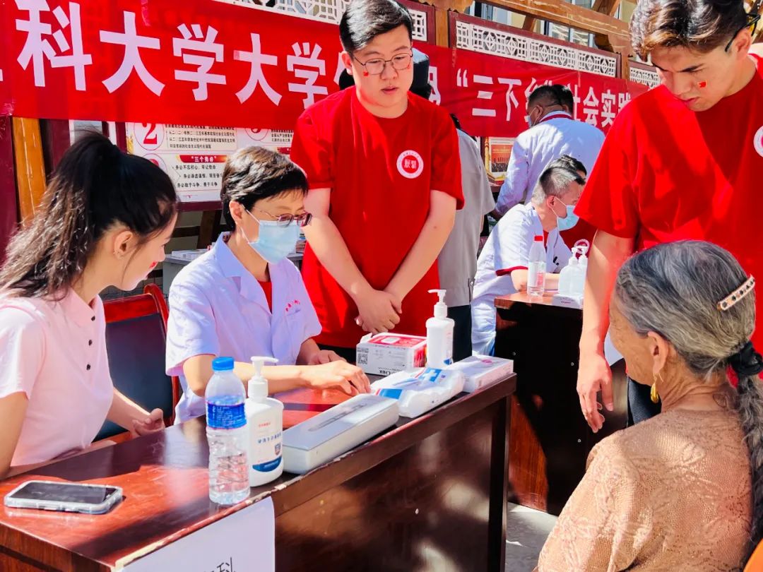 社会实践总队充分发挥专业所长,开展特色义诊、健康科普、急救知识宣讲等实践活动,在同行专家的指导下,大学生为当地村民测量血压,健康知识普及等活动,为行动不便的老年人“送医上门”,切实提高了群众的就医获得感与幸福感。累计开展健康义诊17场,惠及群众3500余人。