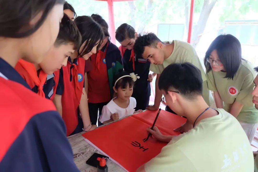 国学清凉夏日,文化浸润人心,新医学子为村里的孩子们开设了文化氛围浓厚的国学小课堂,通过剪纸教学、书法绘画,激发孩子们对国学经典的浓厚兴趣,感受国学经典的无穷魅力。