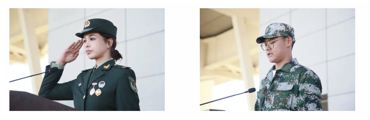 优秀学生教官代表麦合丽亚·沙拉木和优秀学员代表韩睿桐在发言时表示,军训培养了我们吃苦耐劳、团结奋斗的精神,作为新时代的青年,要学习军人的宝贵品格,牢记时代使命、锤炼过硬本领,扎根在祖国和人民需要的地方,为建设社会主义现代化强国和实现第二个百年奋斗目标贡献青春力量。
