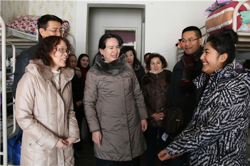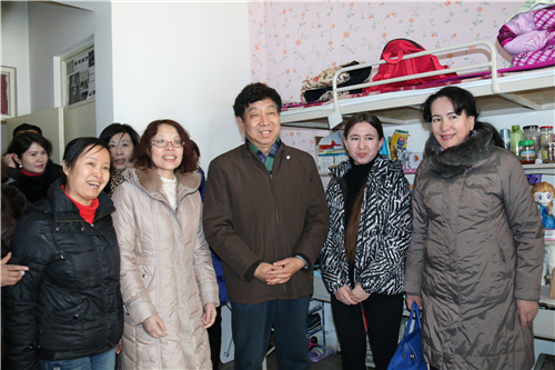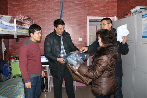 来到学生宿舍,领导们嘘寒问暖,了解学生生活和学习状况,鼓励同学们加紧复习,充分准备,迎接即将到来的期末考试,并预祝他们考个好成绩,过一个快乐的新年。