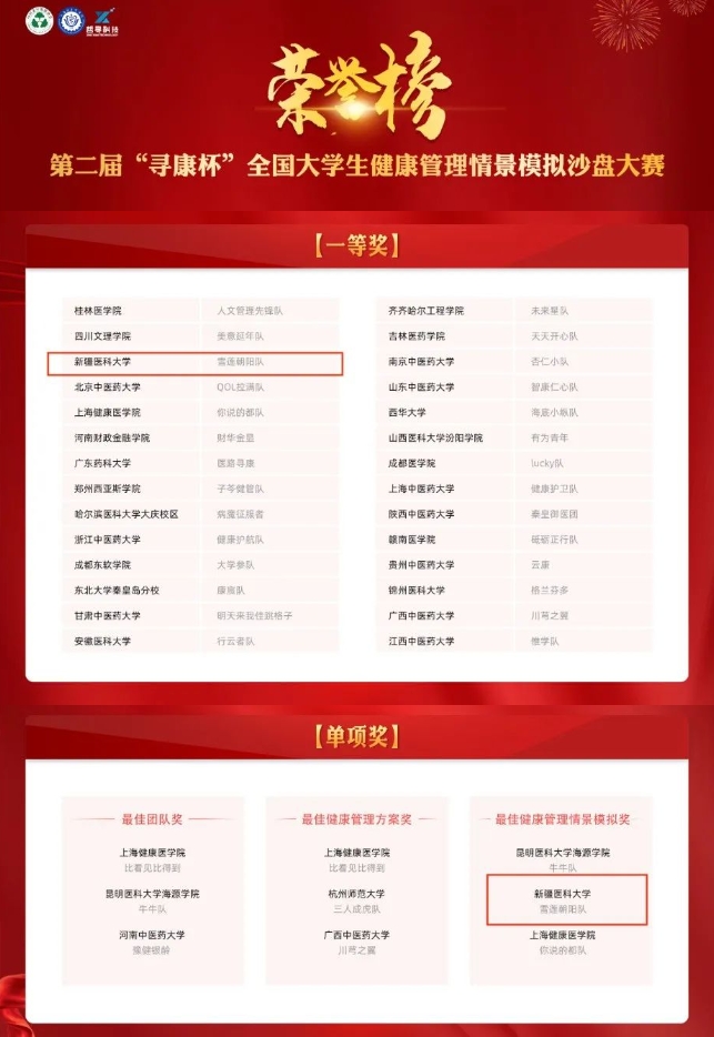 近日,由中国老年保健协会主办的第二届全国健康服务与管理教育论坛暨“寻康杯”全国大学生健康管理情景模拟沙盘大赛落幕。beat365唯一官方网站参赛团队以优异成绩荣获全国一等奖和“最佳健康管理情景模拟奖”单项奖。