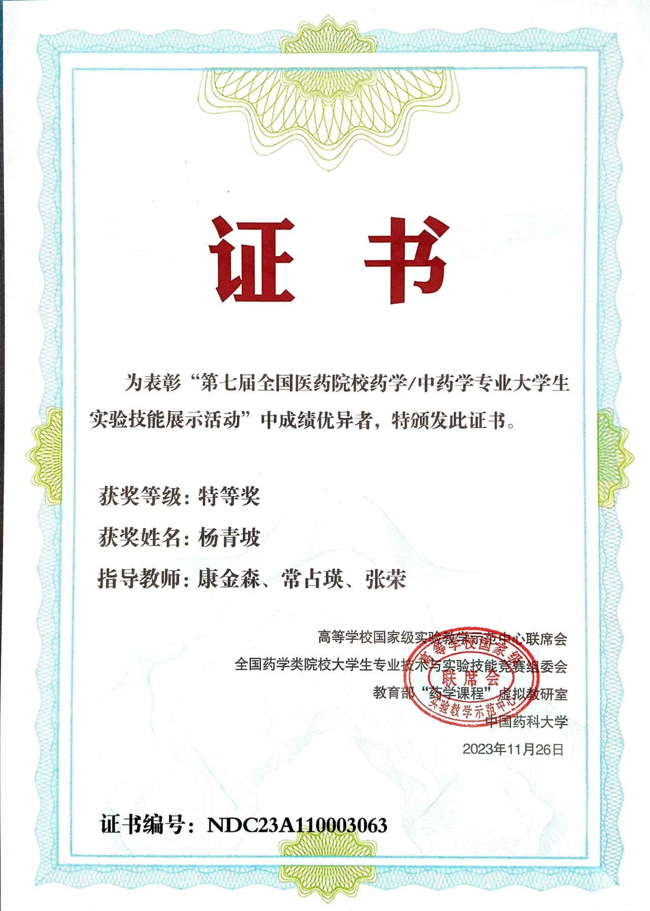 祝贺beat365药学专业 杨青坡同学 顾圆村同学