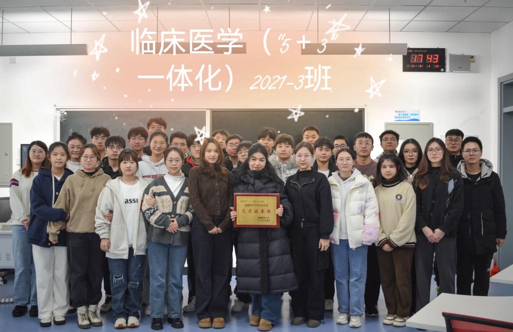 临床医学专业(“5+3”一体化)2021-3班,共有39名同学,团员37名,现有班委15名。班委职责明确、以身作则,积极组织班级活动,连续两年获“先进班集体”“十佳团支书”“优秀班干部”等荣誉称号,英语四级通过率89%。13人参加国家级大学生创新训练,5人参加自治区级大学生创新训练,共24人参加大学生创新创业项目,覆盖率达62%。4名同学荣获“自治区乡村振兴创意大赛”铜奖,3名同学获得“互联网+”创新创业大赛青年红色筑梦之旅赛道自治区铜奖等多项创新创业比赛奖项。