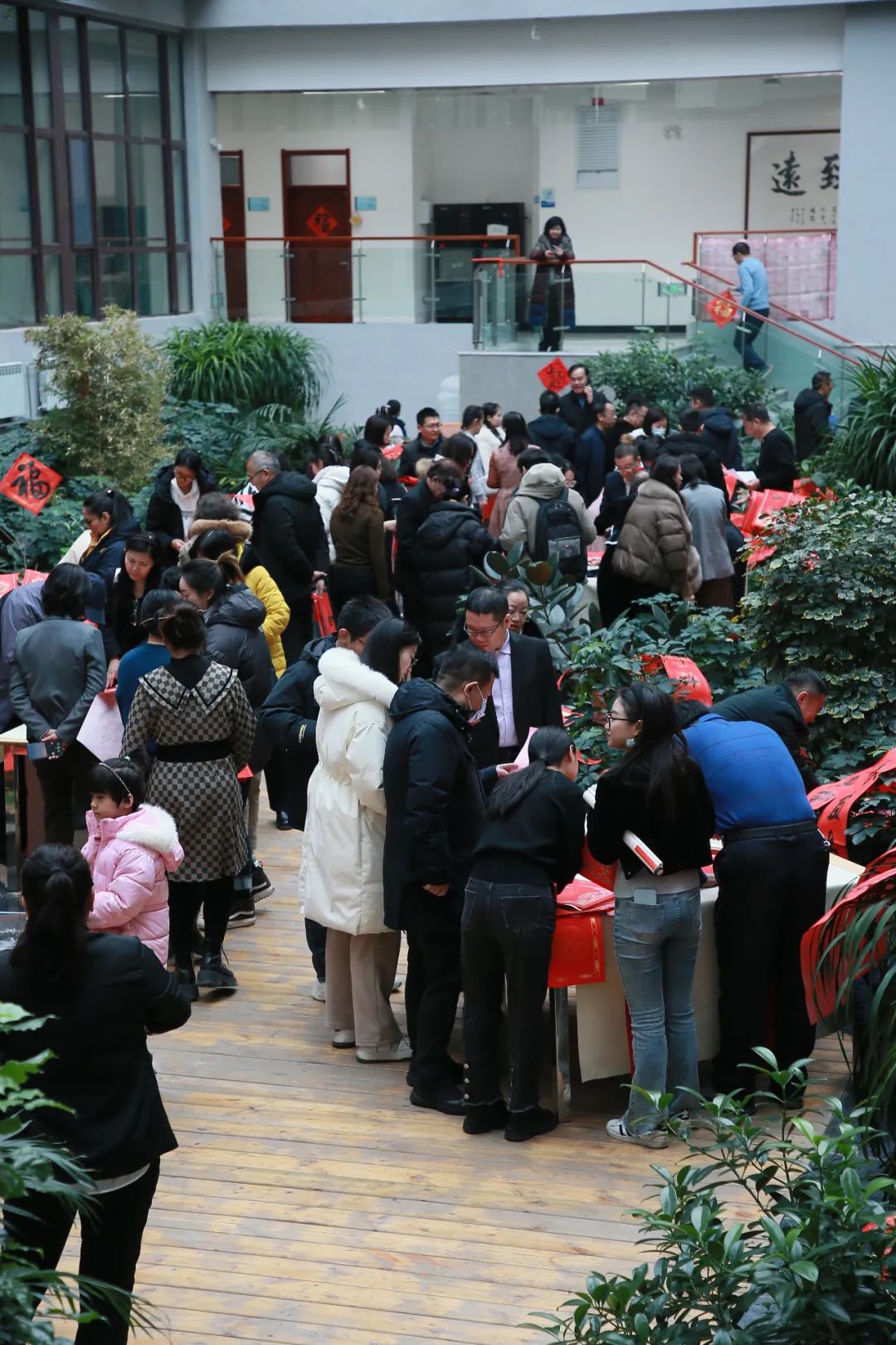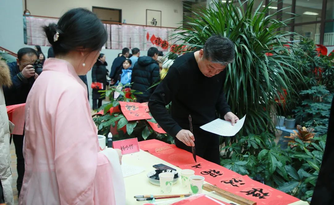 知名书法家李学文、杨克俭、蔺学雄 、高洪泉、吴发林、杨小仟、杜建军等为教职工们现场写春联、送福字