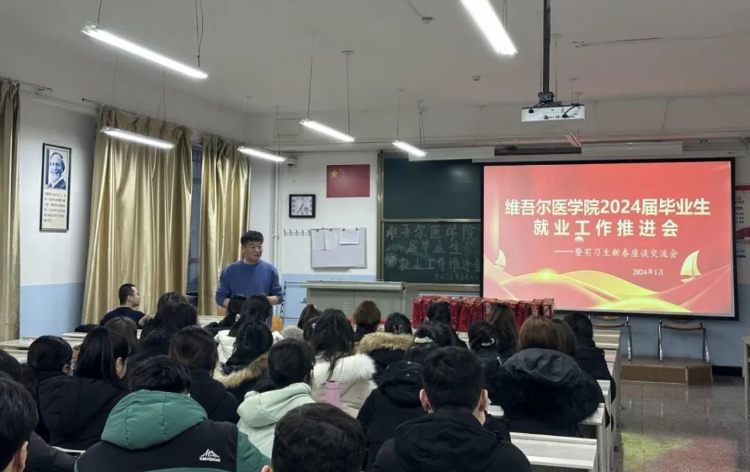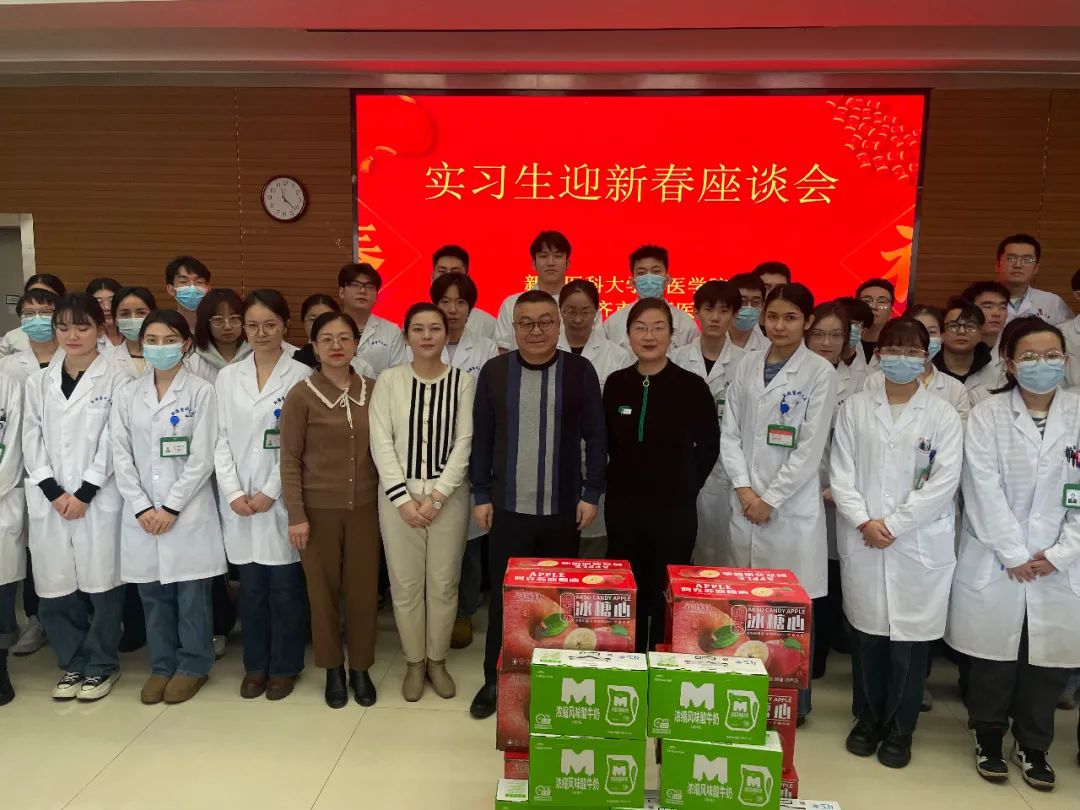 维吾尔医学院开展了2024届毕业生就业推进会暨实习生新春交流座谈会,并为同学们送上了新春祝福和节日慰问品。