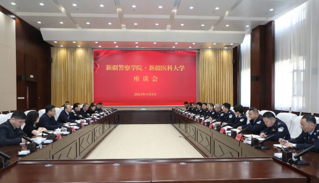 4月9日上午,校党委书记赵天杰与来校交流的自治区公安厅党委委员、新疆警察学院党委书记张建仁一行座谈。