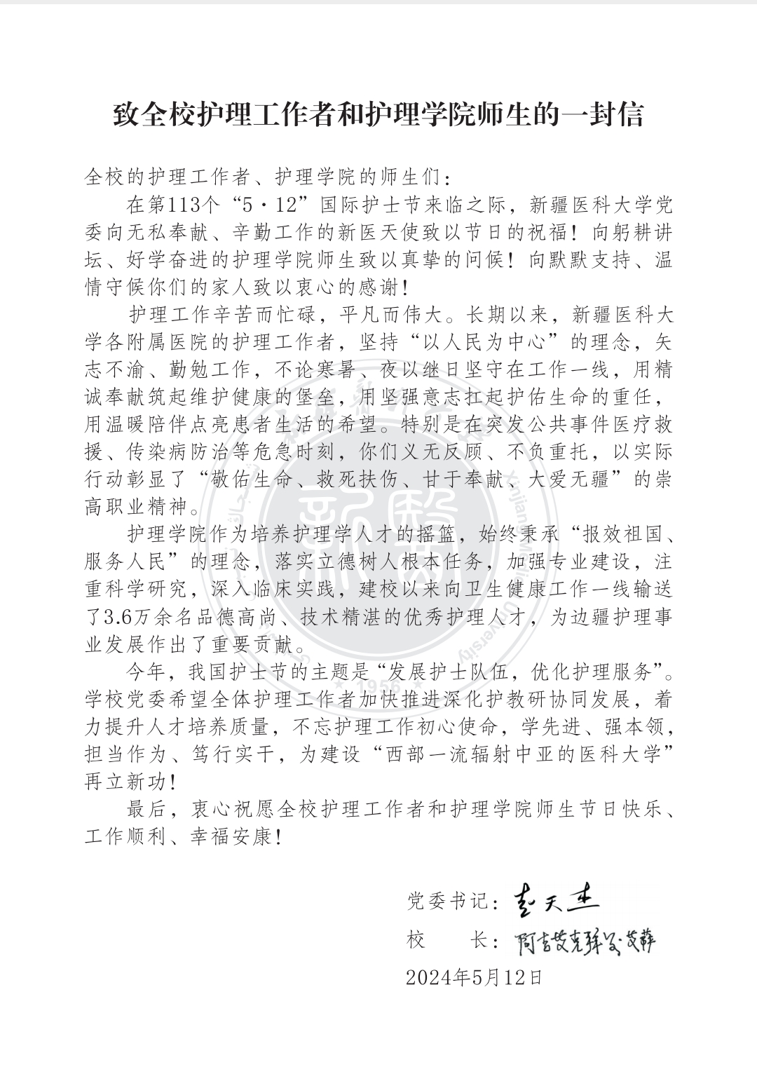 beat365唯一官方网站党委致全校护理工作者和护理学院师生的一封信