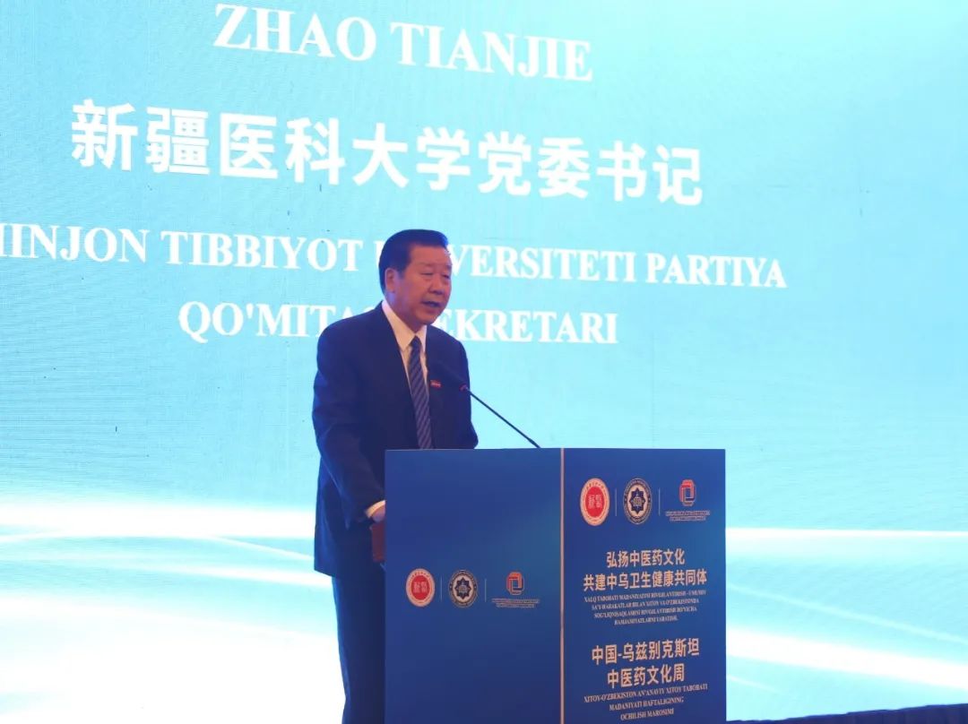 赵天杰发表致辞并宣布文化周正式开幕,赵天杰指出,中乌两国山水相近、文化相通,两国人民交往历史源远流长,随着“一带一路”倡议的推进,中国与乌兹别克斯坦的合作迈上了新的台阶,今年1月两国元首共同宣布发展中乌新时代全天候全面战略伙伴关系,在更高起点上推动构建中乌命运共同体,为中乌各领域合作开辟了新的广阔前景。中医药是中华民族智慧的结晶,是中国博大精深的传统文化之一,它承载着几千年来中华民族独特的生活智慧和治疗经验,深受广大民众的喜爱和信任。本次中医药文化周以“弘扬中医药文化、共建中乌卫生健康共同体”为主题,旨在以和平合作、开放包容、互学互鉴、互利共赢的丝绸之路精神为指引,让更多人了解和享用中医药,使中医药的独特智慧能够惠及更多的人们。我们相信,通过这次宣传周的努力,必将在中乌间架起一座“中医桥梁”,推动中乌传统医学健康持续发展。
