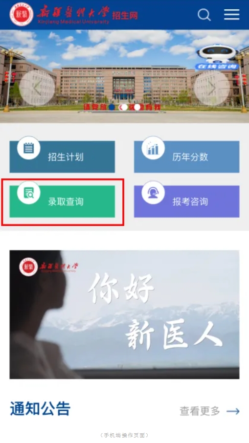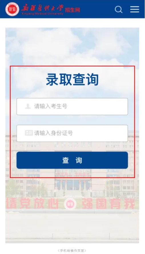 02在首页中点选“录取查询”,进入查询界面。