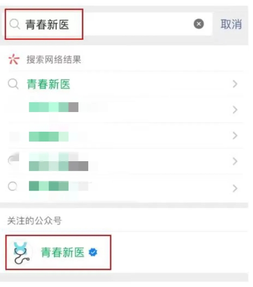 2、微信公众号“青春新医”