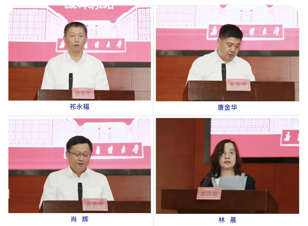 校党委常委、组织部部长祁永福,教务处副处长唐金华,科学技术处处长肖辉,研究生学院党总支副书记、院长林晨,人事处处长齐艳,基础医学院党委书记、副院长何斌,中医学院党委副书记、院长、第四附属医院(自治区中医医院、第四临床医学院)党委书记韩荣,第一附属医院党委副书记、院长,第一临床医学院院长陆晨,分别围绕学习宣传贯彻党的二十届三中全会精神,结合岗位和工作实际,聚焦破解高质量发展的难点问题作大会交流发言。