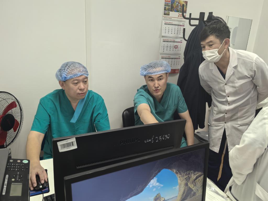 哈萨克斯坦国家医学科学中心聘请木胡牙提·乌拉斯汉和马依彤为哈萨克斯坦国家医学科学中心名誉教授,并举行了受聘仪式。专家团队一行协助哈萨克斯坦国家医学科学中心开展疑难复杂病例-冠脉支架植入术及左束支起搏器植入术4台手术示教。