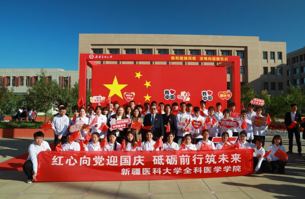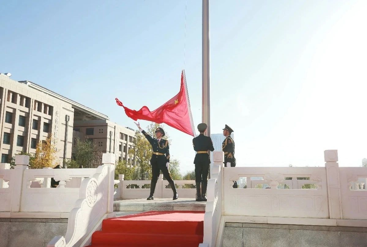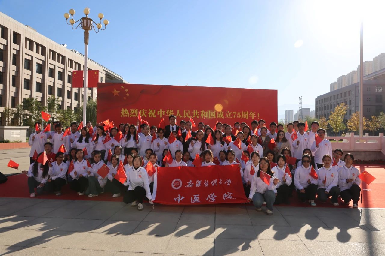 五星红旗迎着朝阳分外鲜艳,校党委副书记、校长阿吉艾克拜尔·艾萨带大家回顾了在中国共产党的坚强领导下,全国各族人民勠力同心、团结奋斗,伟大祖国发生了翻天覆地的变化,中国式现代化全面推进,中华民族正以不可阻挡的步伐迈向伟大复兴;新疆各族人民与党同心、与时俱进,天山南北发生了翻天覆地的变化,取得了空前的历史成就;学校在党和政府的关心关怀下,综合实力不断提升,迎来了发展的最好时期,正向着建设“西部一流、辐射中亚的高水平医科大学”的目标奋力前行。让我们坚定理想信念,勇于创新、敢于担当,把对党的忠诚、对祖国的热爱融入学校高质量发展的实践中。