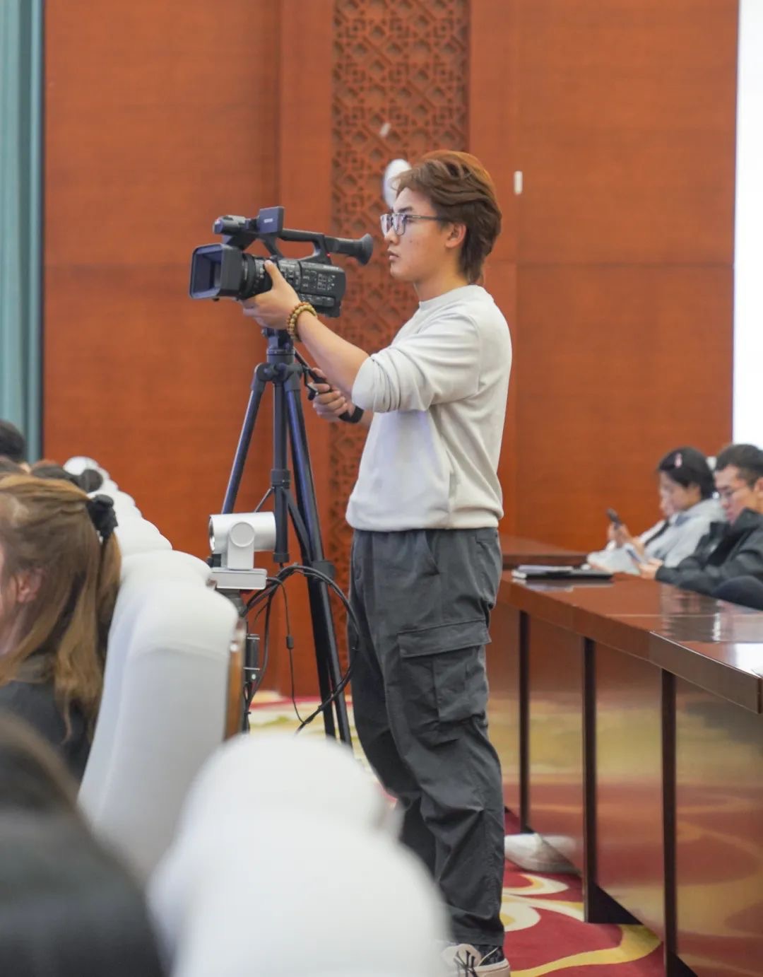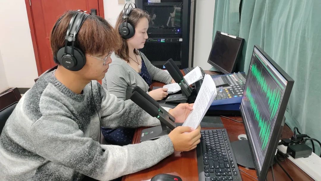 周福安同学录制校园广播节目