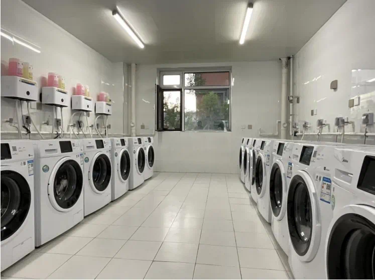 学生在洗衣房内自助洗衣服