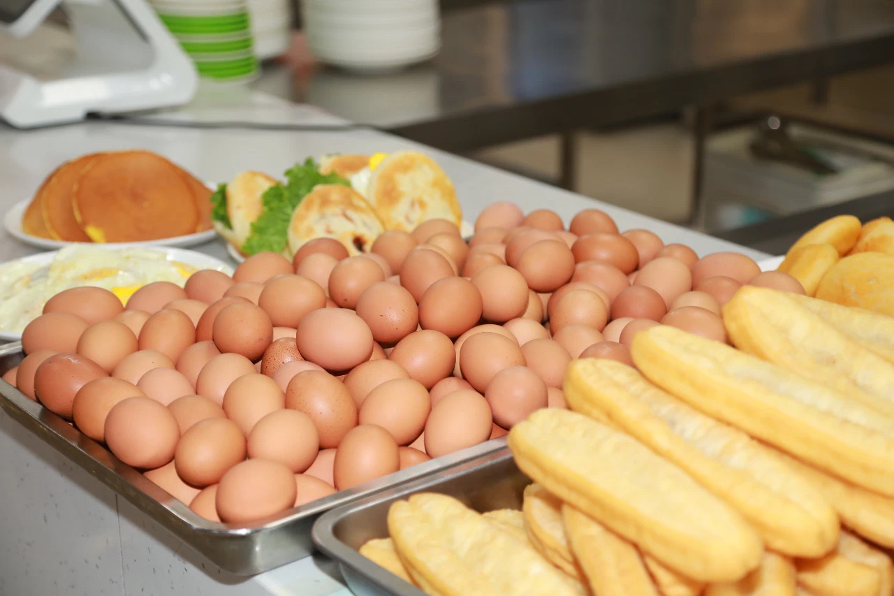 同学们用热气腾腾的早餐