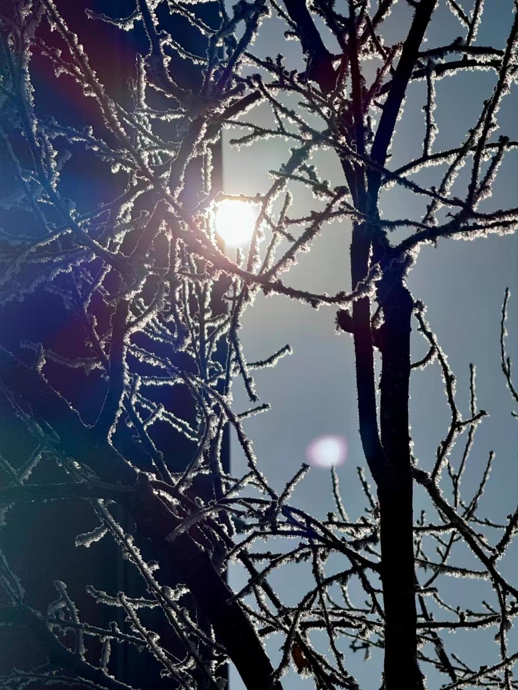 洒在晶莹剔透的树枝上