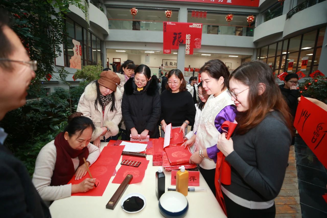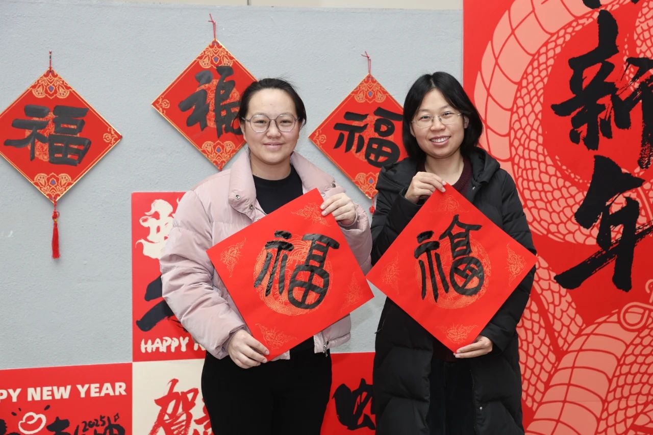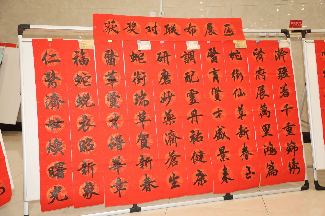 走进基础医学楼,百余幅春联和福字挂满了大厅展板和中庭,活动现场红纸铺展,墨香四溢。现场设置了获奖春联展示区,对全校师生富有特色、寓意吉祥的优秀原创春联作品进行展示,大家纷纷驻足欣赏称赞。