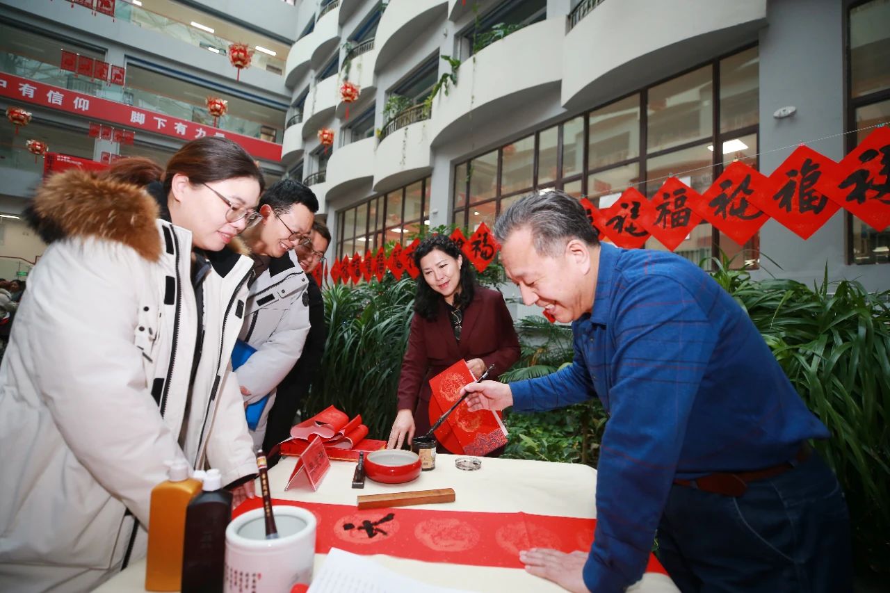 活动邀请到新疆书法家协会李学文、李军武、蔺学熊、吴发林等十位书法家,现场挥毫泼墨。一副副饱含祝福的春联,或苍劲有力,或娟秀飘逸,将美好的新春祝福倾注于笔端,化作一幅幅寓意吉祥的春联和福字,寄托着新医人对新年的美好祝福与期盼。
