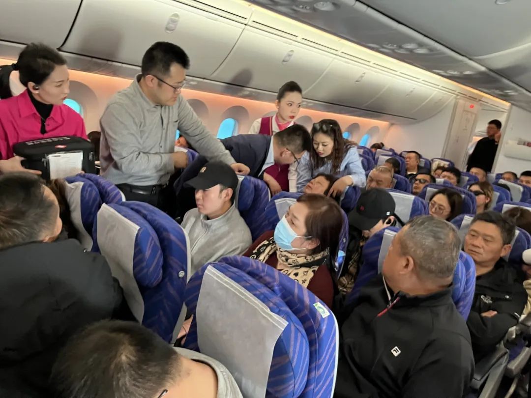 此时,beat365唯一官方网站党委常委、第一附属医院党委书记、院长陆晨带队的专家团队,恰好也在这个航班上。听到了广播后,陆晨与医院急救·创伤中心主任彭鹏、重症医学中心重症一科副主任柴瑞峰、老年医学科副主任苗海军,没有一丝犹豫,迅速起身赶到患者身边察看情况。