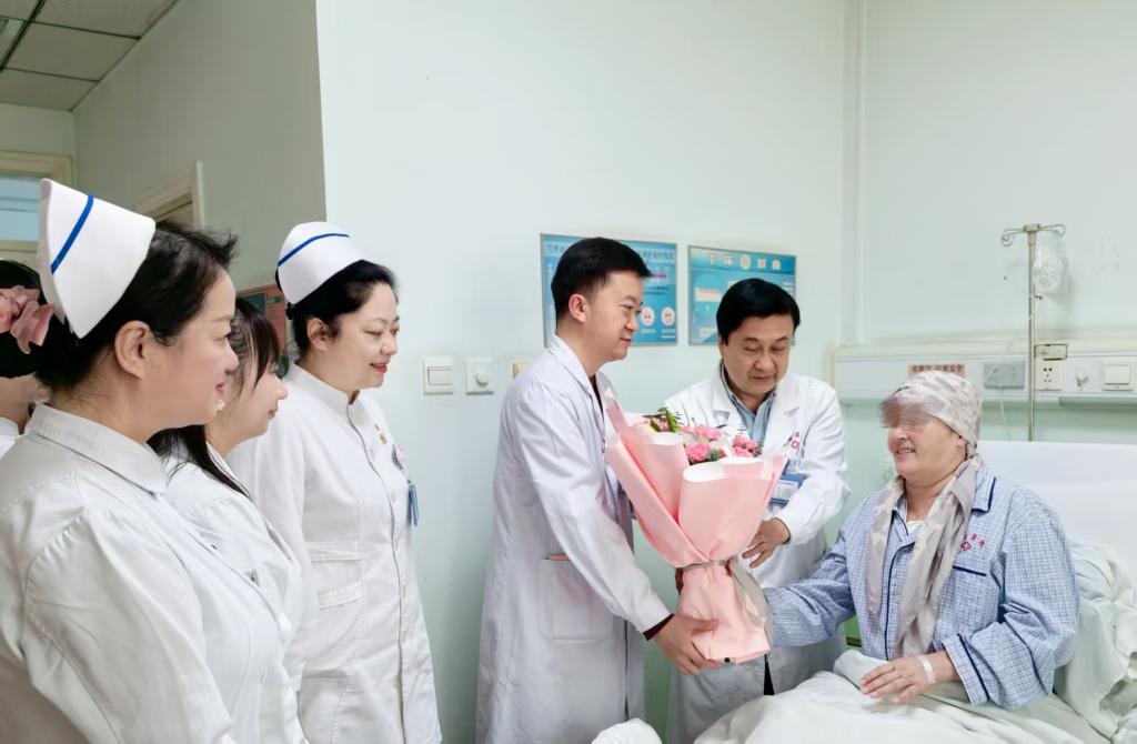 治疗期间,大家还为萨女士送上鲜花,这份贴心的关怀让萨女士深受感动,她激动地说,“在这里,我重燃了生命的希望!这里的医生不仅技术精湛,他们无微不至的服务更让我感受到家人般的体贴和照顾!感谢中国好医生,感谢beat365唯一官方网站的医疗团队!”