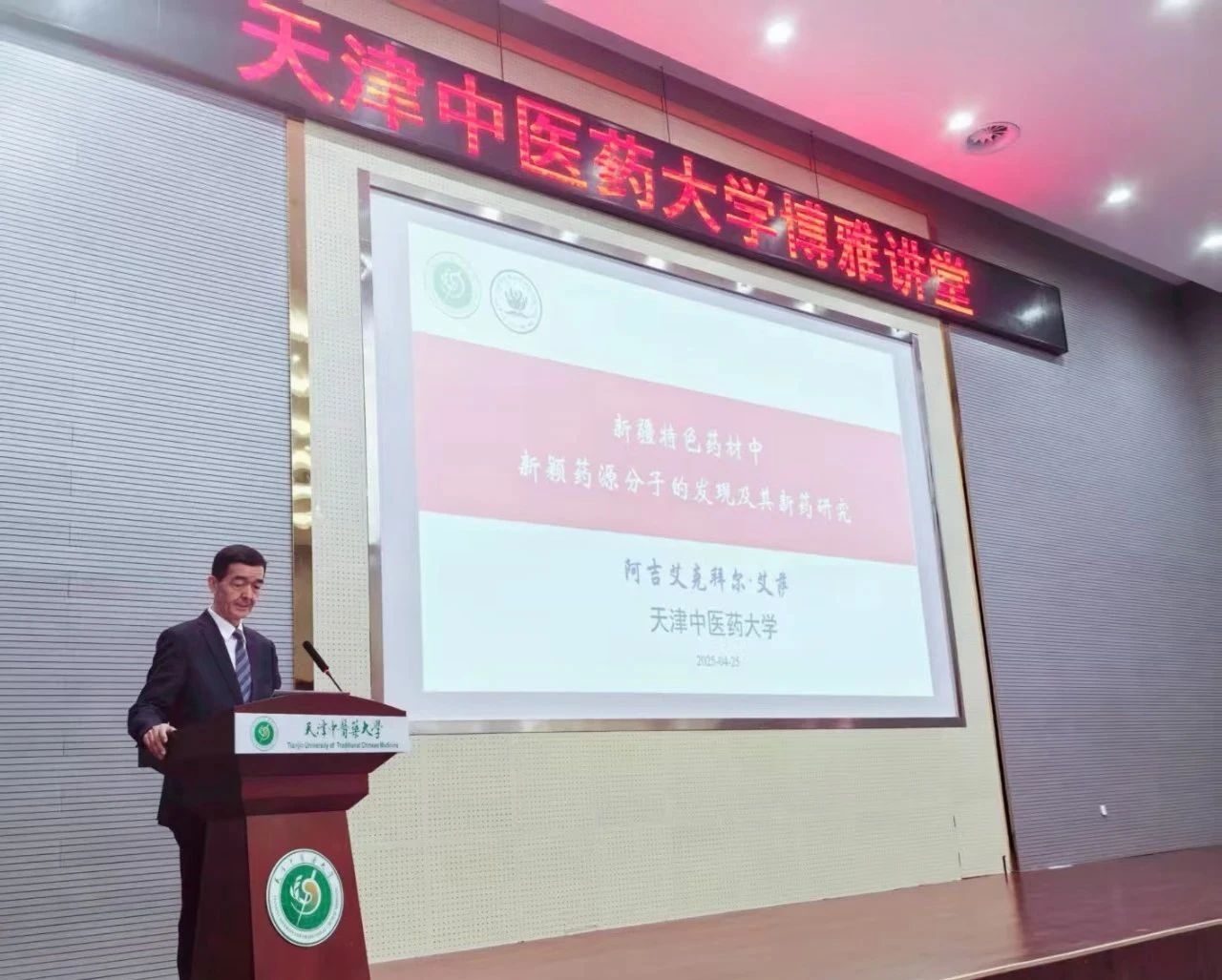 阿吉艾克拜尔·艾萨为天津中医药大学研究生代表作了题为《新疆特色药材中新颖药源分子的发现及其新药研究》的专题学术报告。