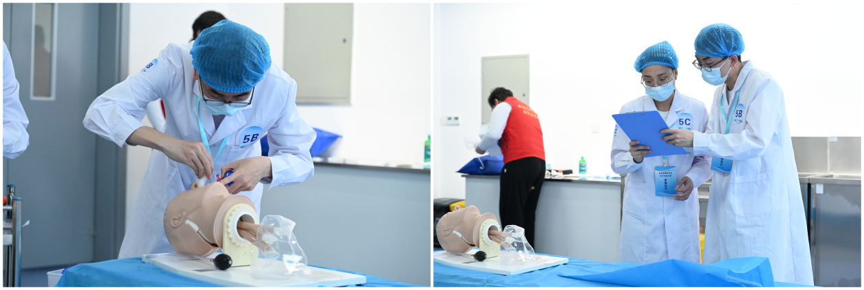 临床医学类赛道:选手们凭借扎实的理论知识和敏捷的应变能力,良好的配合与默契,有条不紊地应对模拟临床场景中的各种突发状况,充分展现出了过硬的专业素养和良好的团队协作精神。
