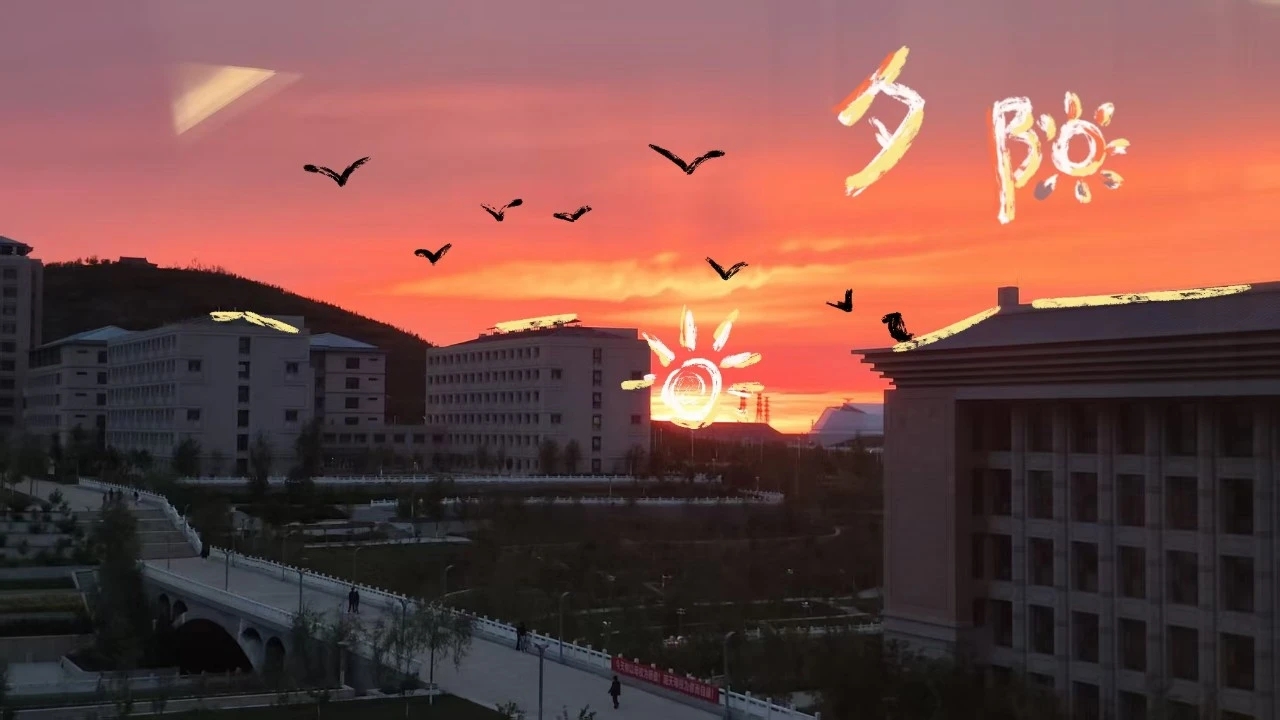 染上霞光的教学楼