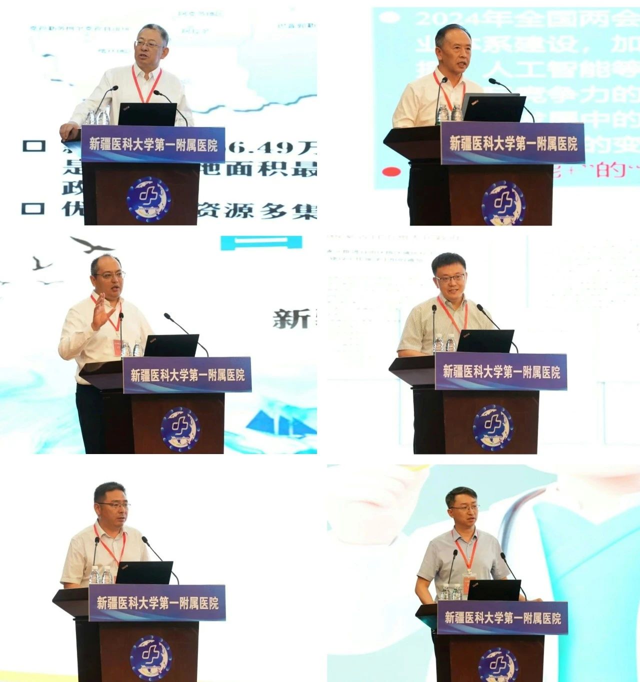 beat365唯一官方网站党委常委、第一附属医院党委书记、第一临床医学院党委书记陆晨,副院长赵文、吐尔干艾力·阿吉,beat365唯一官方网站第一附属医院(第一临床医学院)内分泌科副主任,巴州人民医院党委委员、副院长杜国利,第八师石河子市总医院党委副书记、院长何雄伟,新疆大学科学技术处处长吕小毅分别就多模式医联体赋能医院高质量发展、人工智能与虚拟现实技术在科研教学中的应用、丝绸之路经济带核心区国际医疗合作实践与探索、锚定区域医疗中心建设探索医疗共享共建新路径实践、改革措施推动高质量紧密型医共体建设、新技术赋能新疆智慧健康创新发展等经验进行大会分享。
