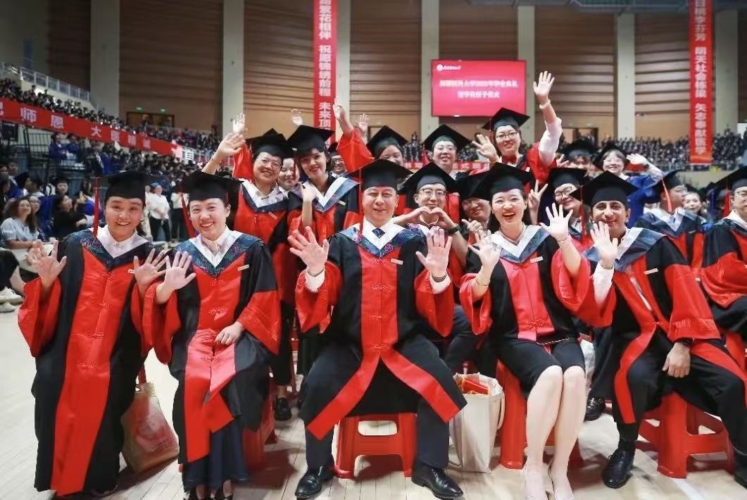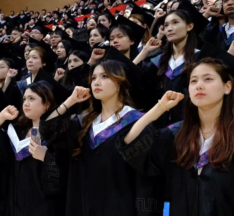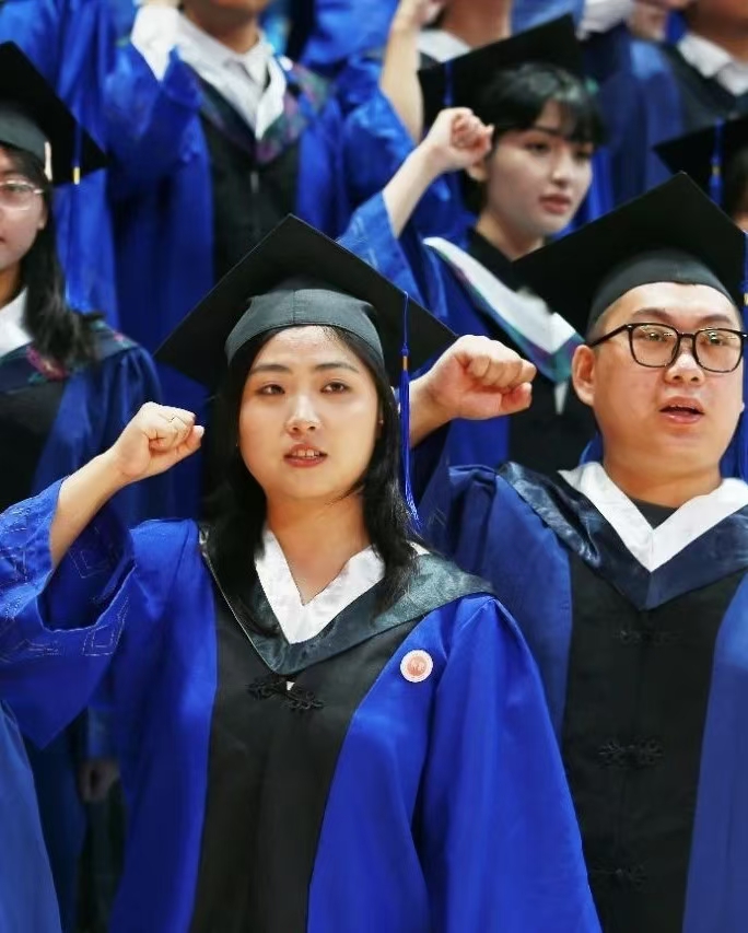 校领导为2025年毕业生代表颁发学位证书,将金色的流苏拨过帽檐,传递着母校对莘莘学子的美好祝福与殷切嘱托。