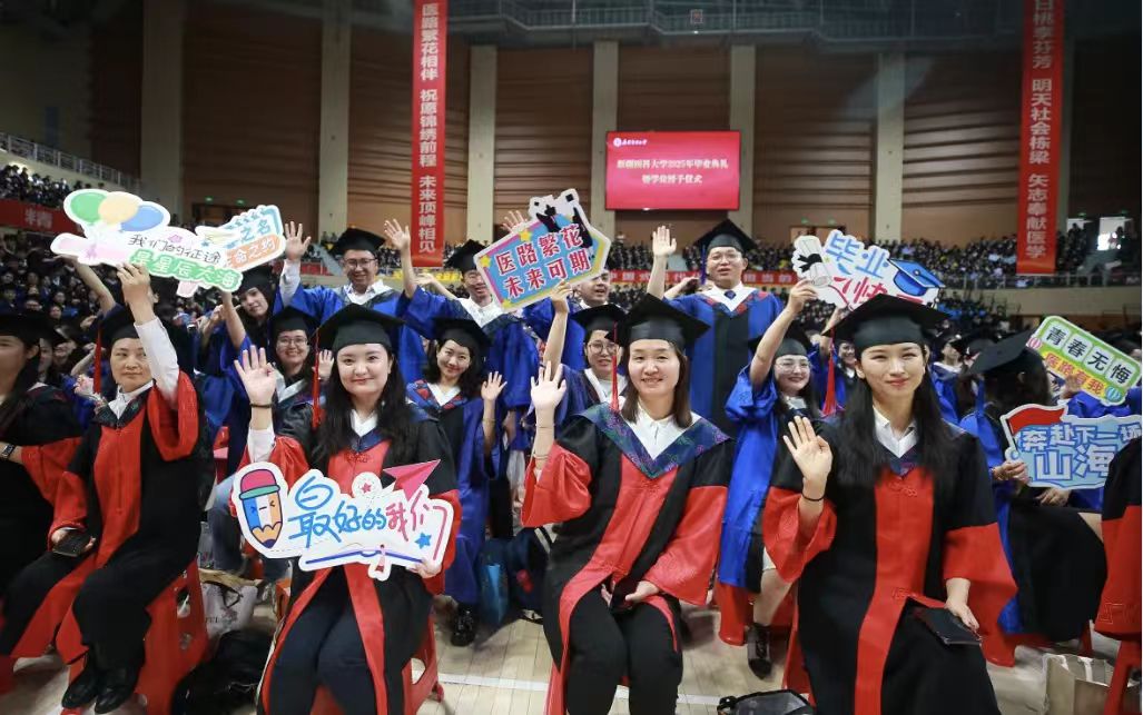 在全体老师的共同见证下,副校长刘涛带领2025年毕业生重温《中华人民共和国医学生誓词》,会场内青春涌动、誓言铿锵。从今天起,新医毕业生将坚守承诺,投身祖国医疗卫生事业的广阔天地,在守护人民健康的新征程上勇毅前行、再谱华章。