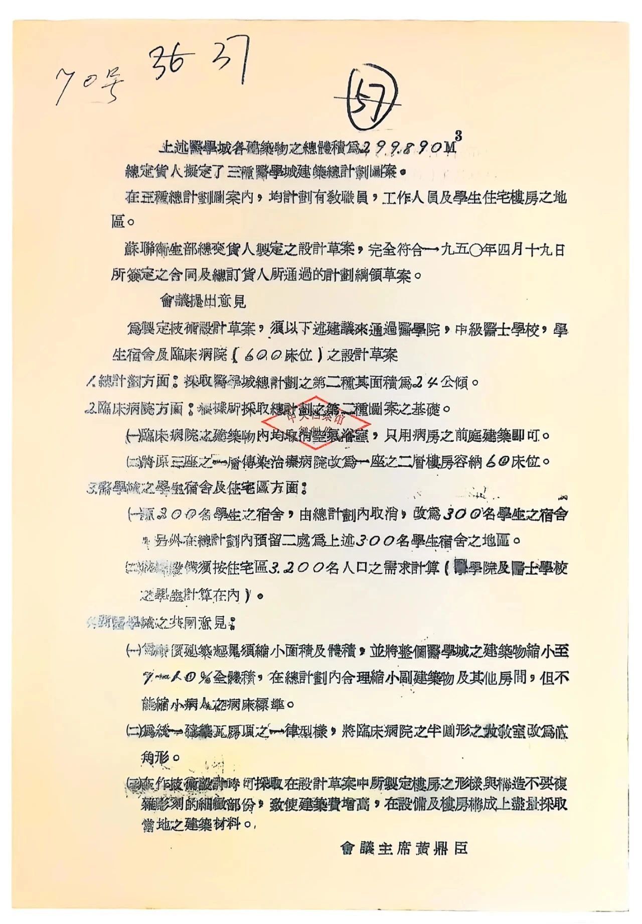 这是一份来自中央档案馆的珍贵史料1951年2月1日中央卫生部召开审查“新疆医学城”设计草案的会议审查并同意了新疆省迪化市建筑保健区(医学城)设计草案参会人员均为当时中国顶尖的医学教育专家、工程设计专家以及苏联专家