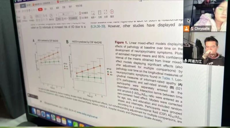 谢热古丽·阿纳依与阿迪力江·艾合麦提尼亚孜视频连线学习。图片由受访者本人提供