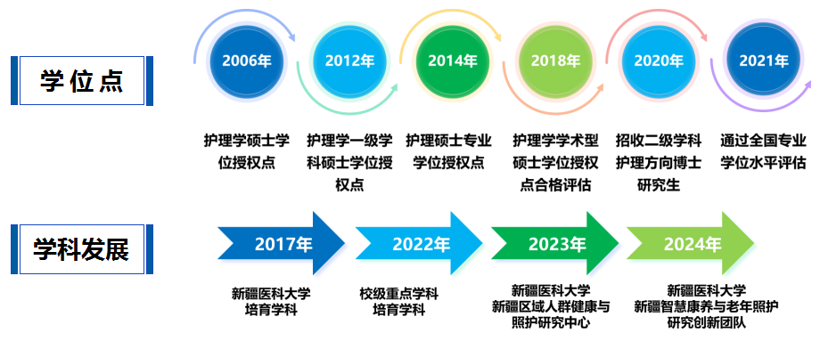 beat365唯一官方网站护理教育始于1955年,2000年开设护理学本科教育,2006年获批护理学硕士学位授权点,2012年获批一级学科护理学硕士学位授权点,2014年获批护理硕士专业学位授权点,形成了完整的本硕博人才培养的体系。护理学实验中心2014年获批自治区级实验教学示范中心;护理学专业2017年获批自治区重点专业创新创业示范专业,2019年获批自治区级一流本科专业建设点,2020年招收二级学科护理方向博士研究生,2020年获批国家级一流本科专业建设点,2023年以有效期6年通过教育部护理学本科专业认证;2024年获批自治区科协“新疆应急救护科普教育基地”。护理学专业2024年获评软科中国大学专业评级 B+。历经70年的发展,形成了以本科教育为主体、积极发展研究生教育的格局。